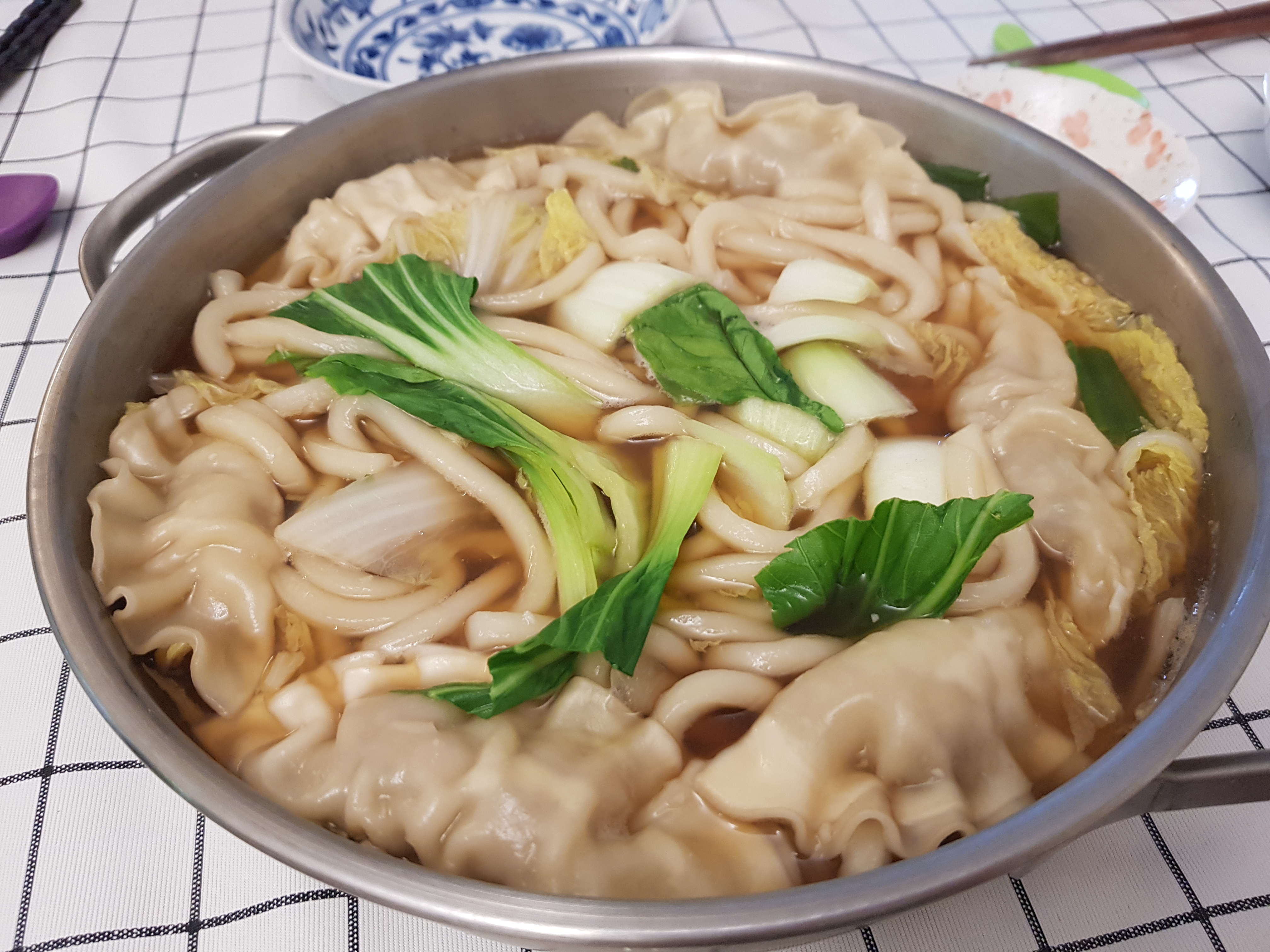 배춧잎 몇장이랑 짜서 그냥은 못 먹겠던 비비고 불고기 만두로 대~충 불고기전골스러운 혹은 샤브샤브스러운 국물요리를 끓여낸다. 우동 사리는 처음부터 추가요~!!